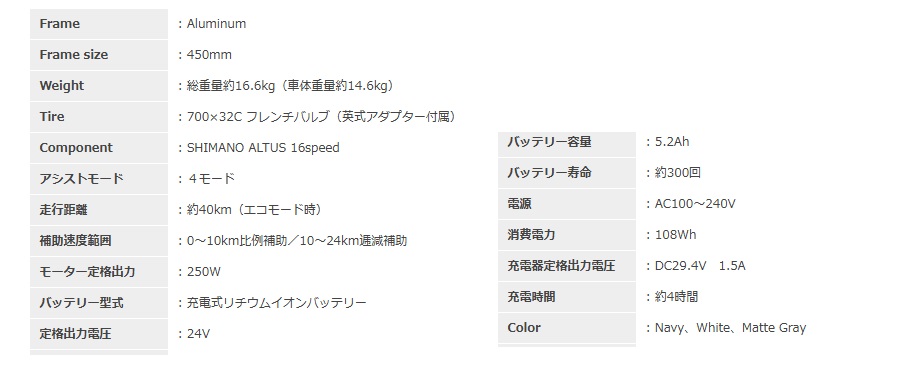 軽量エアロアルミフレーム採用、電動アシストクロスバイク