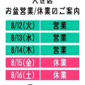 年末年始休業のお知らせ